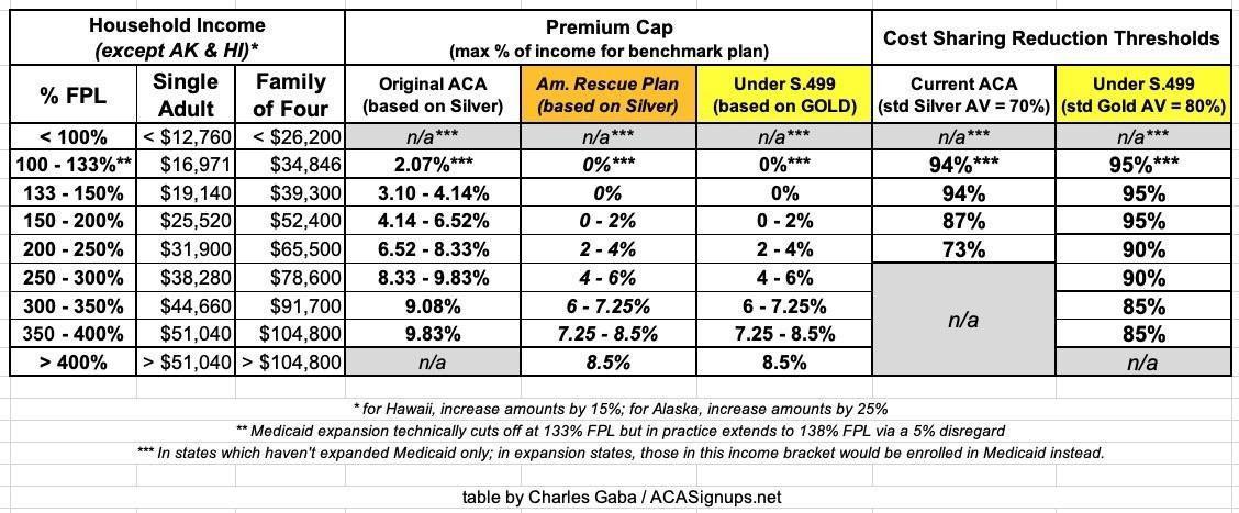 The result of this is that every ACA exchange enrollee would be able to afford at least a Gold plan, and anyone earning less than 400% FPL would be eligible for additional savings which would bump them up to Gold+, Platinum or even a Platinum+ plan, like so: