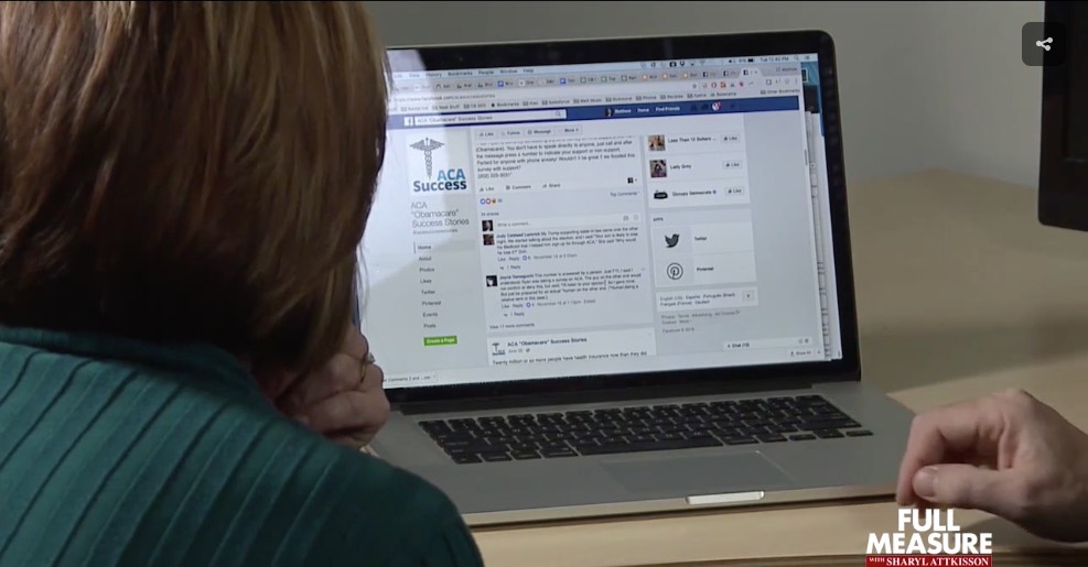 She [Attkisson] reports that he evaluated 226,000 pro-Obamacare posts made by 40,000 Facebook profiles.