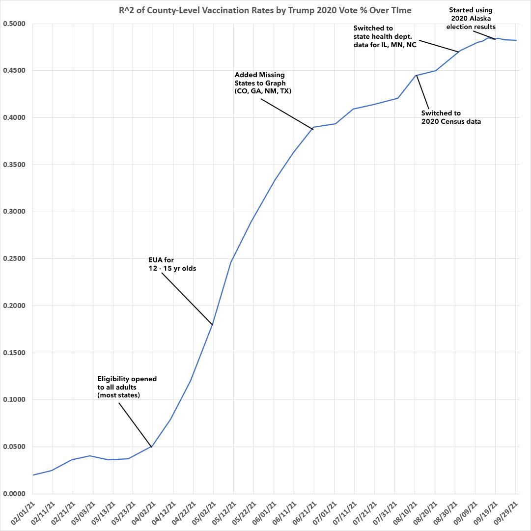 Weekly Update: U.S. #COVID19 vaccination levels by COUNTY & Partisan Lean