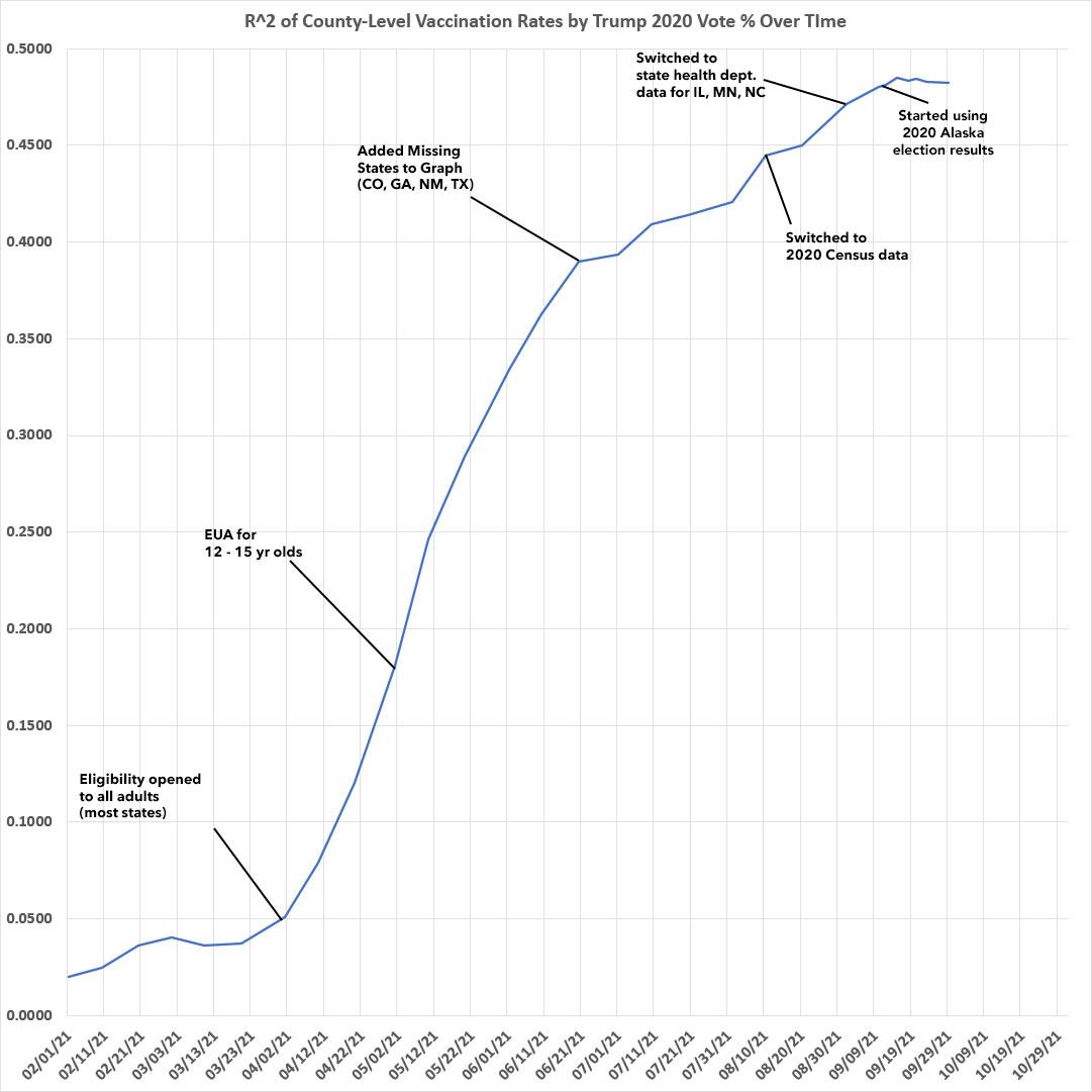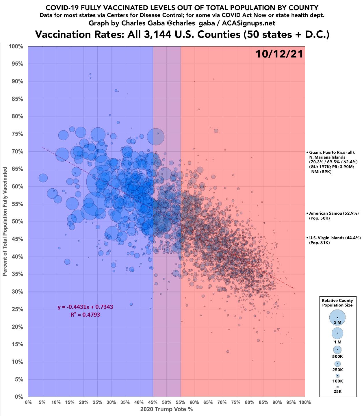 Weekly Update: U.S. #COVID19 vaccination levels by COUNTY & Partisan Lean