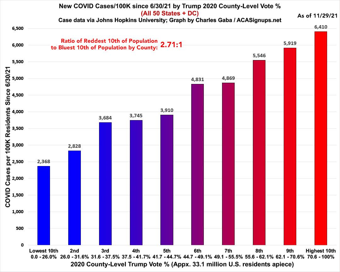 As you can see, case rates since June are 2.16x higher in the least-vaccinated tenth of the country than in the most-vaccinated tenth...slightly lower than a few weeks ago.