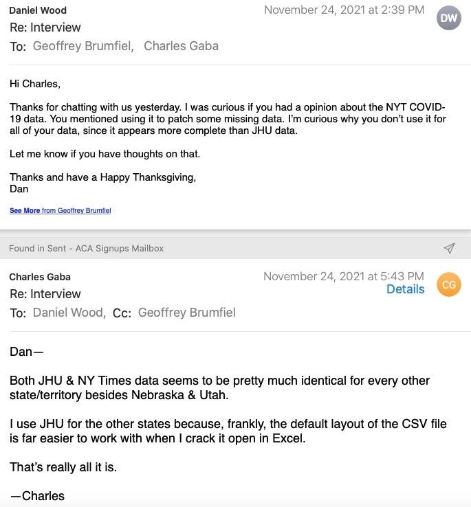 HOWEVER, when you contact a fellow data analyst specifically because they're working on the same data, then request a lengthy meeting with them in order to speak with them about their work and their methodology, and then follow up with them in order to schedule a second lengthy meeting to discuss the same work again, and then follow up with them a third time to clarify other details, it's generally considered professional to mention them at least once in the final piece you publish on your far higher-profile platform.