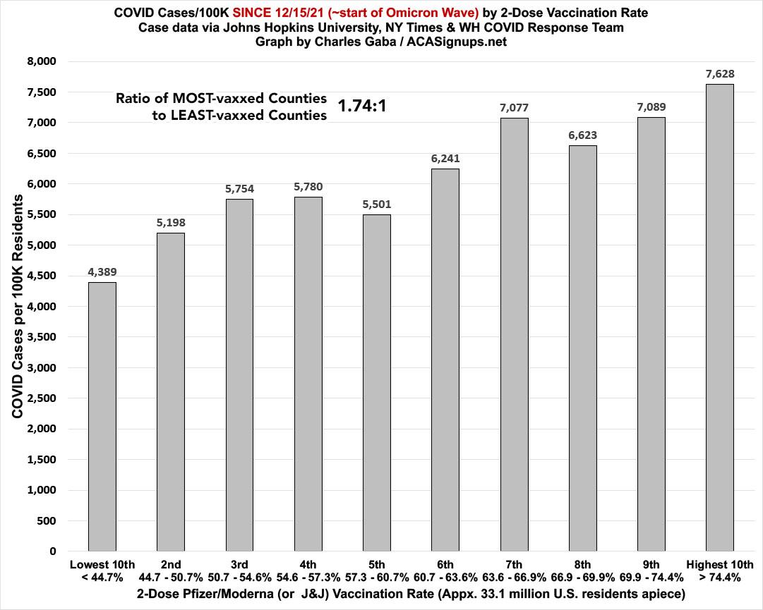 • Delta wave CASE rates: 2.12 higher in the least-vaccinated decile than the most-vaccinated decile