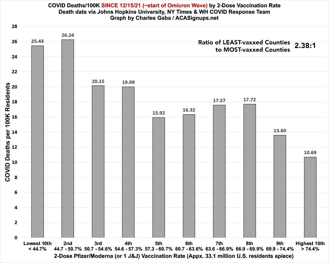 • Delta wave DEATH rates: 4.77x higher in the least-vaccinated decile than the most-vaccinated decile