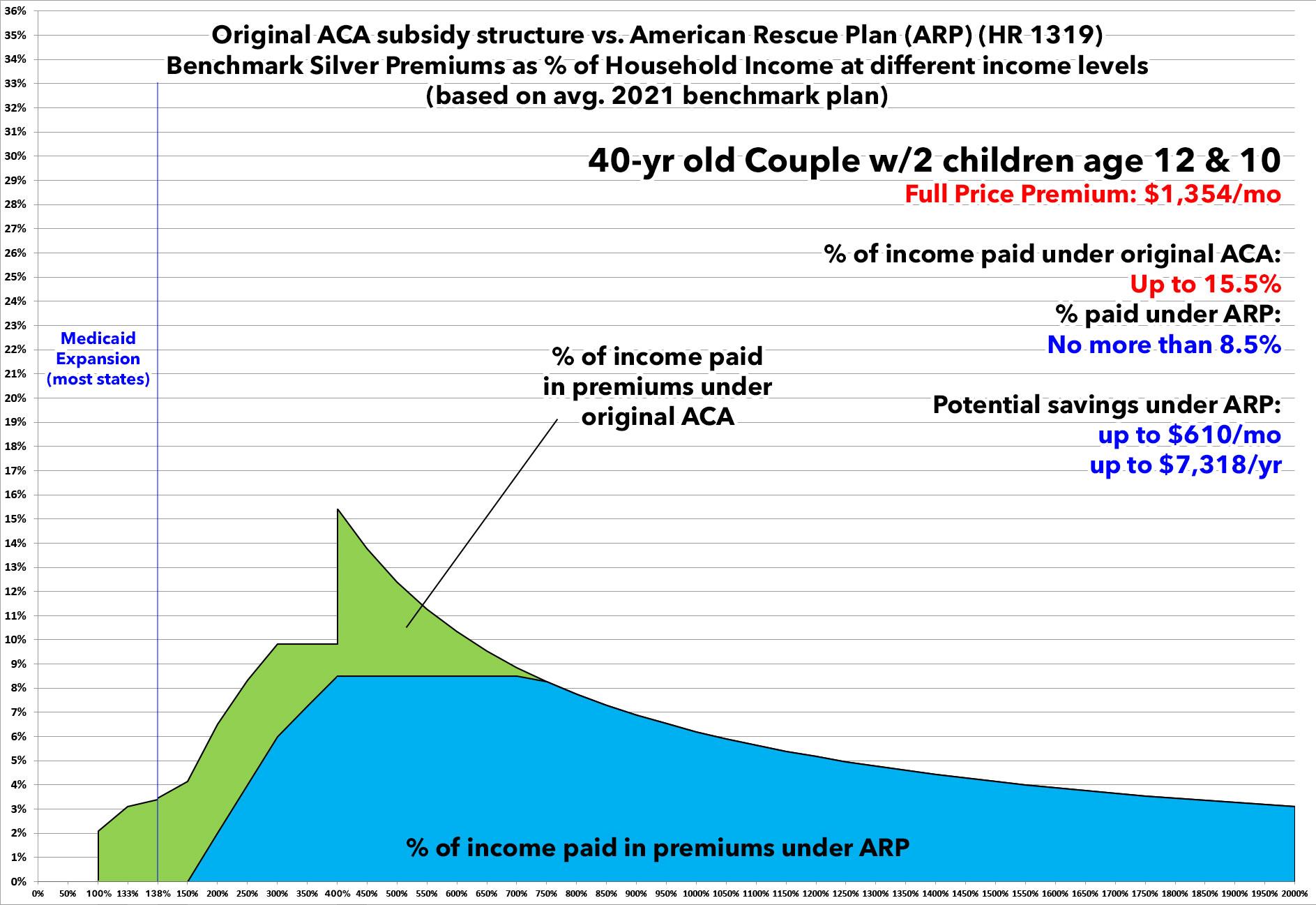 Under the expanded American Rescue Plan subsidy structure, they only have to pay a maximum of 8.5% of their income for the benchmark Silver ACA plan.