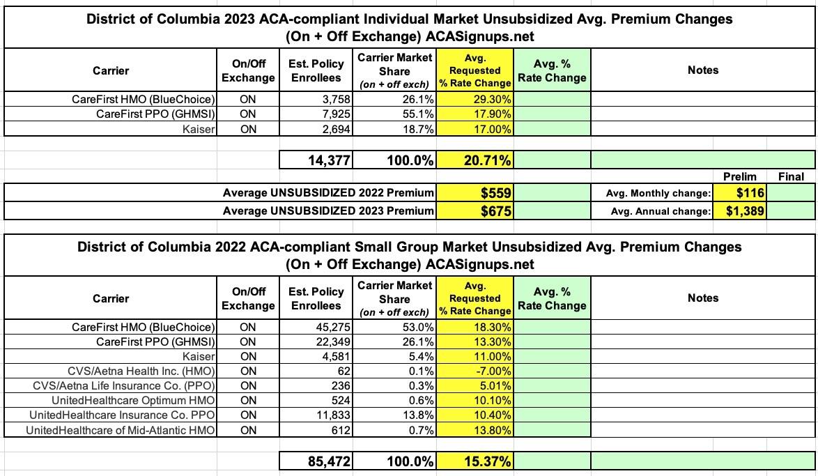 District of Columbia: (Preliminary) avg. 2023 #ACA rate changes: +20.7%