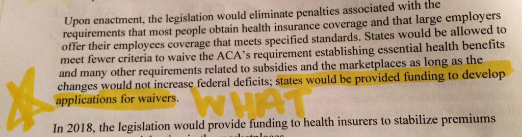 That means they're effectively planning on using $2 billion of the money stolen from the Medicaid fund and using it to essentially bribe the states into submitting waivers.which themselves would take away some of the services needed by the very people who were just kicked off of Medicaid onto individual market plans.