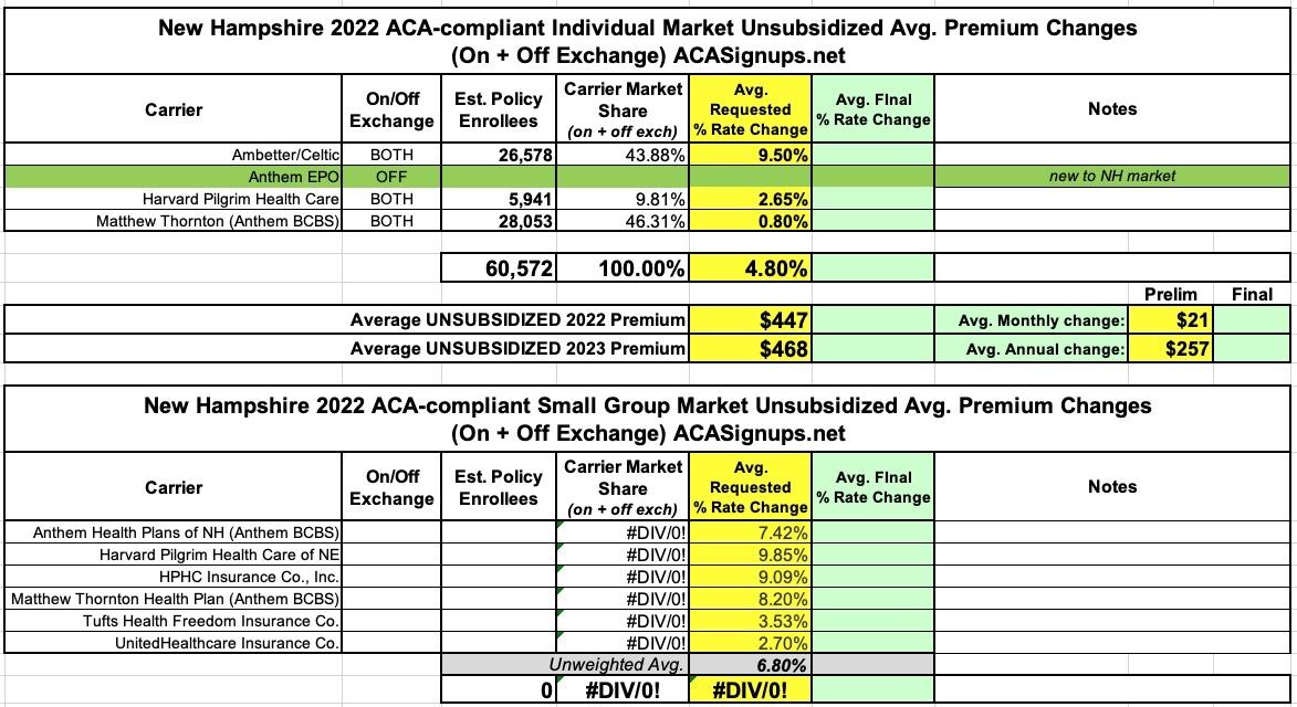 New Hampshire: Final avg. unsubsidized 2023 #ACA rate changes: +4.8% (w/caveat)