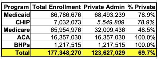 Again, I'm not sure how the ~7.0 million CHIP enrollees are handled; assuming the FFS/MCO split is similar to Medicaid that would make it about 2/3 privately administered.