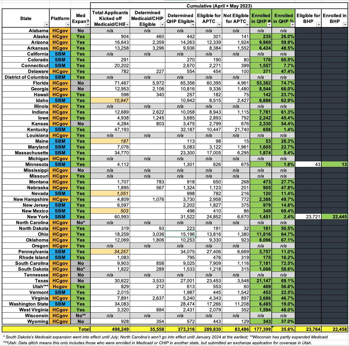 - For HC.gov, across 23 states, ~233K people who were kicked off of Medicaid/CHIP applied for ACA exchange coverage