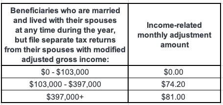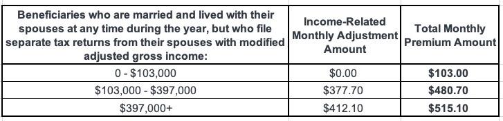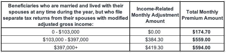 Premiums for high-income beneficiaries who are married and lived with their spouse at any time during the taxable year but file a separate return, are as follows: