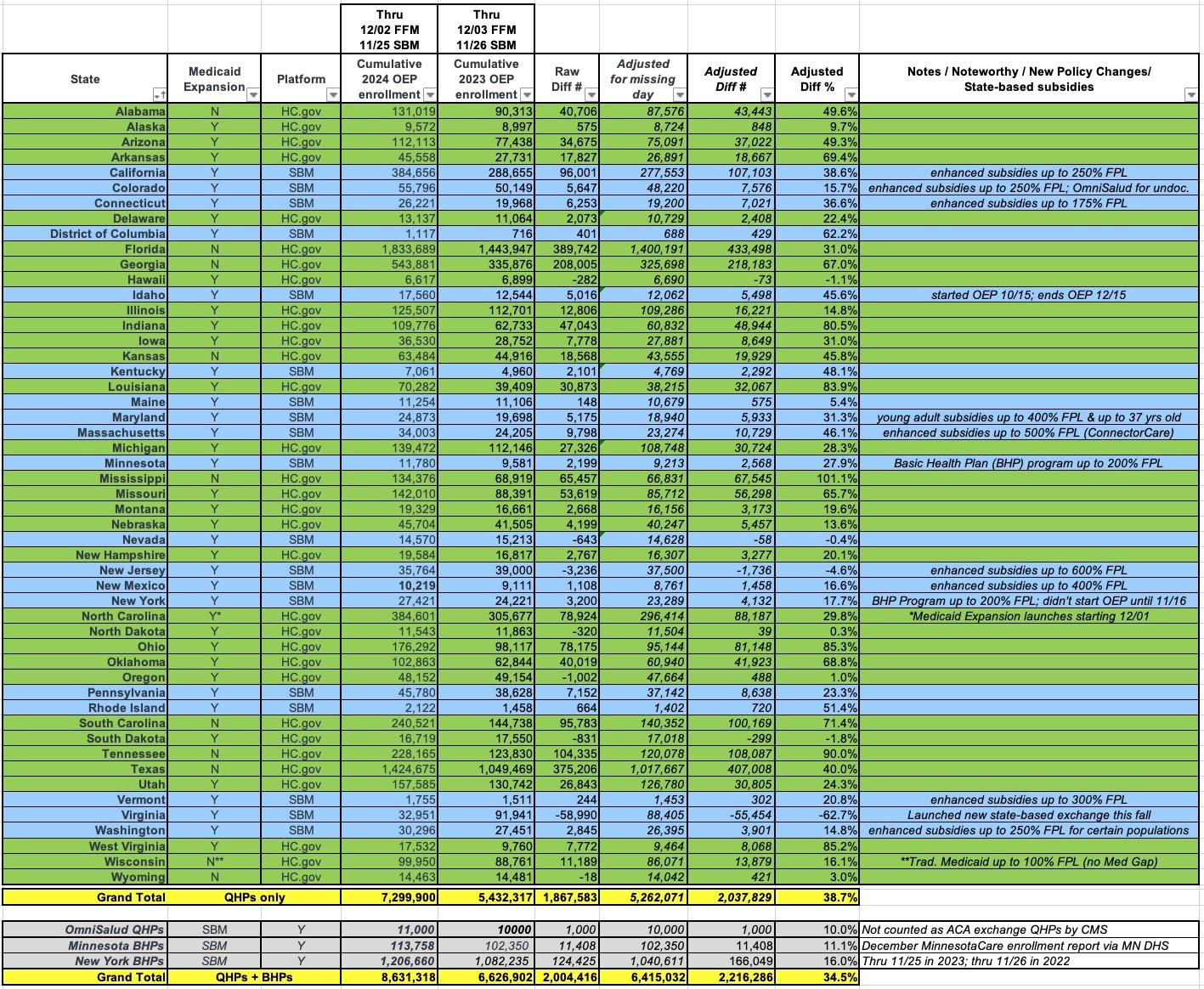 Earlier today I posted the latest official above-the-fold numbers for the 2024 ACA Open Enrollment Period as reported by the Centers for Medicare & Medicaid Services (CMS):