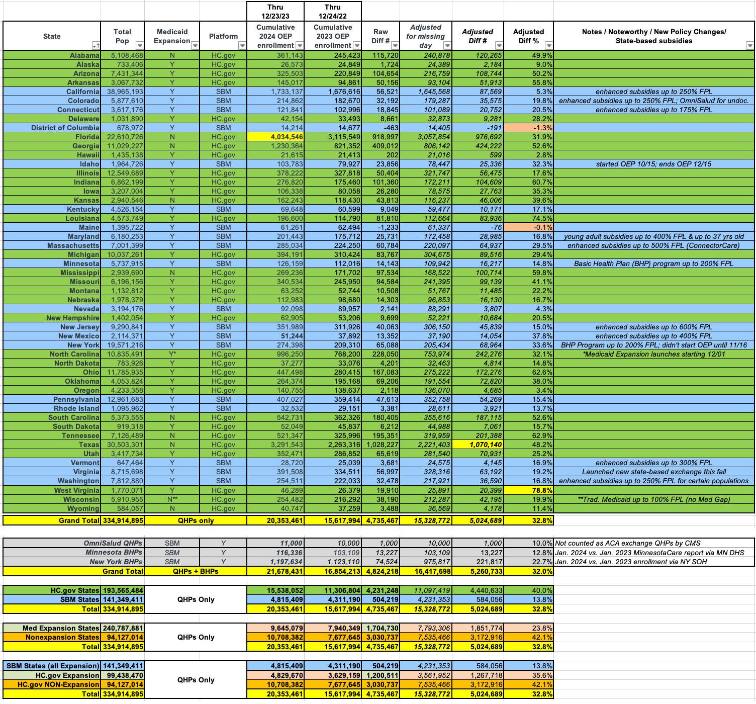 As promised, here's my full state-by-state breakout of the latest 2024 ACA Open Enrollment Period "Snapshot" report as we head into the final week of enrollment in most states.