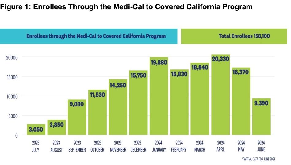 Under the program, Covered California automatically enrolls individuals in one of its low-cost health plans when they lose Medi-Cal coverage and gain eligibility for financial help through Covered California. Through early June of 2024, the program has helped 158,100 Californians remain insured.