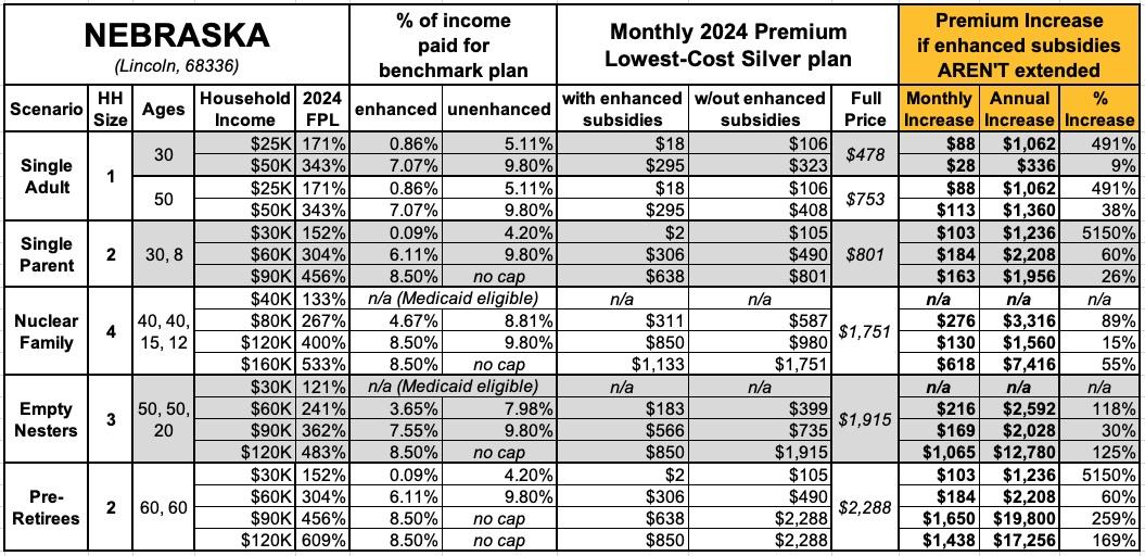 • First, it's important to keep in mind that the only hard numbers for the Federal Poverty Level and average Benchmark Silver ACA premiums are as of 2024. By 2026, the first year that the impact of the enhanced subsidies ending would actually go into effect, each of thse would be higher...perhaps 5% or so for the FPL and by varying amounts for benchmark premiums in each state.