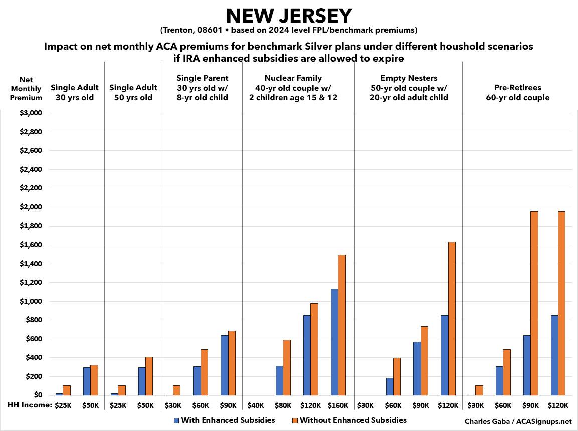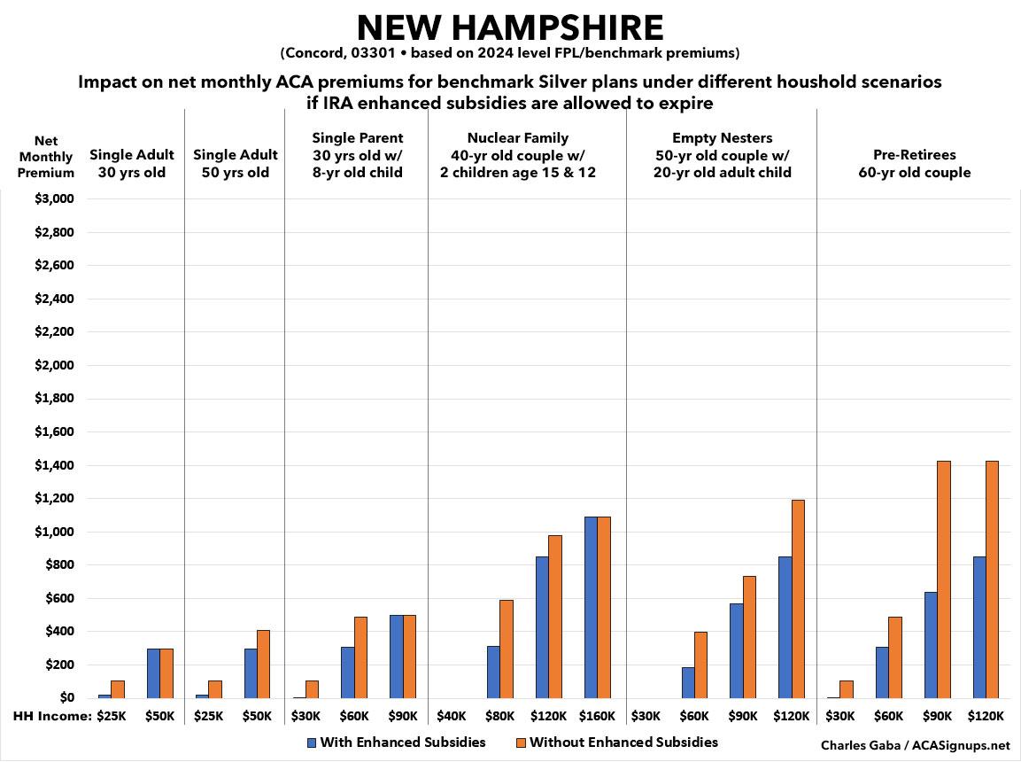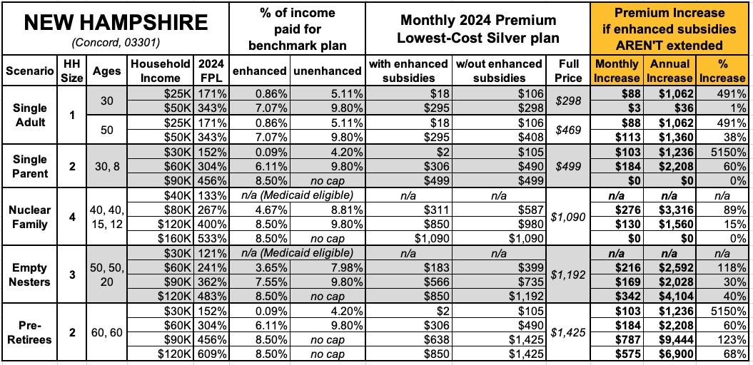 That's the macro level, however. As I did a couple of years ago when the subsidies were originally at risk of expiring in 2023, I decided to run the numbers myself to get an idea of just how much enrollees real-world health insurance premiums would go up in the event the ARPA/IRA subsidies are indeed allowed to expire at the end of next year.