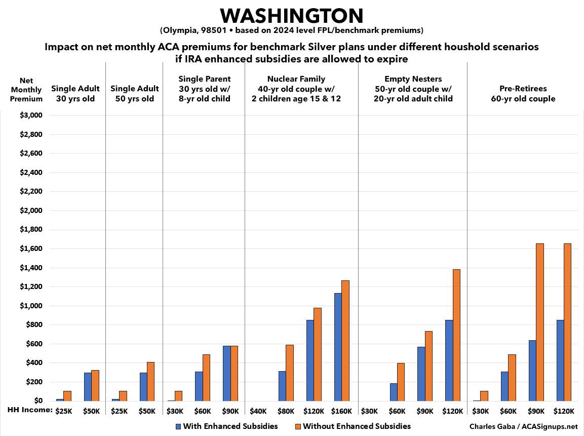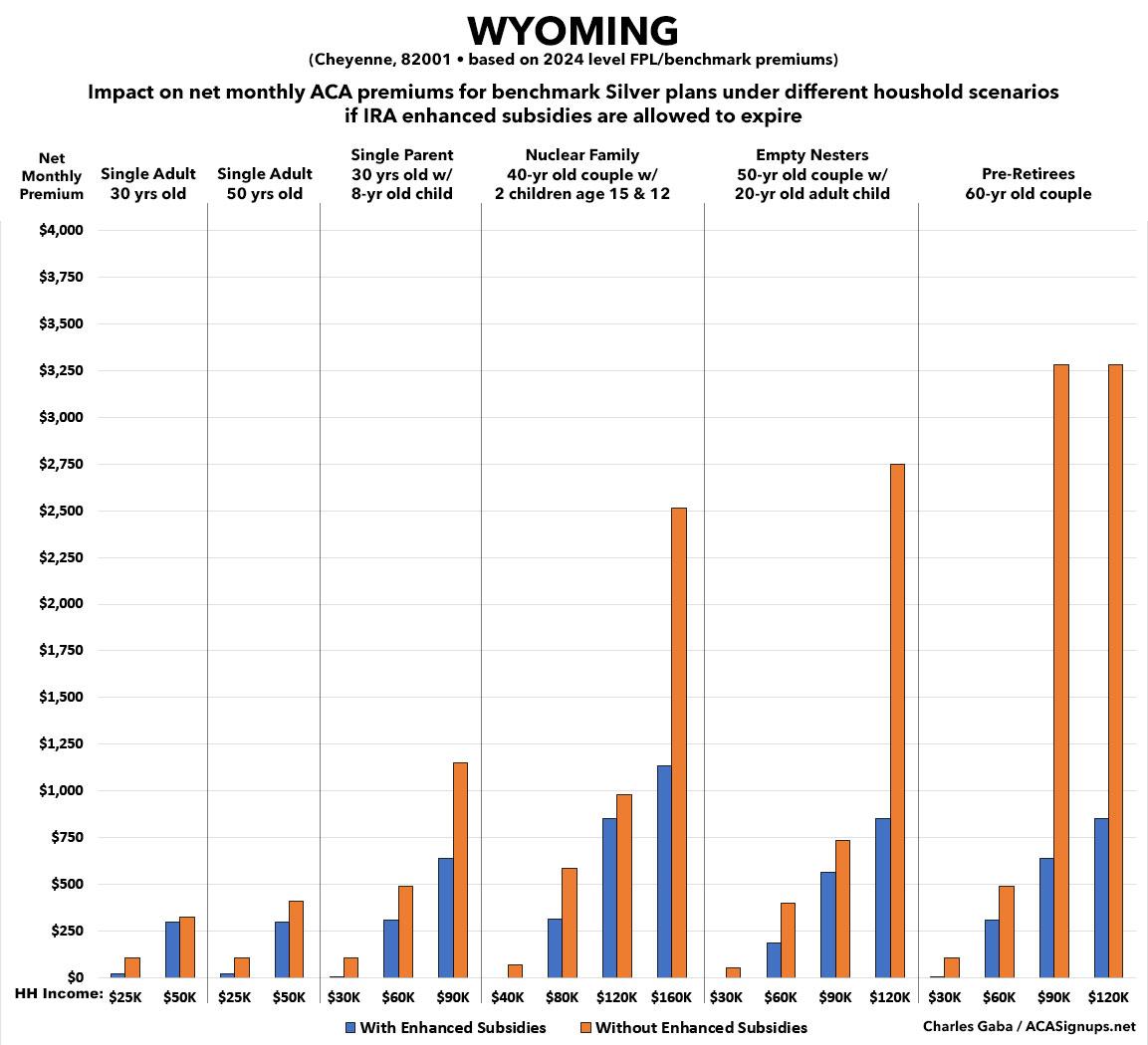 That's the macro level, however. As I did a couple of years ago when the subsidies were originally at risk of expiring in 2023, I decided to run the numbers myself to get an idea of just how much enrollees real-world health insurance premiums would go up in the event the ARPA/IRA subsidies are indeed allowed to expire at the end of next year.