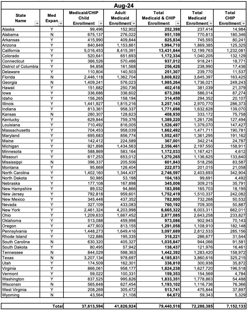CMS releases August 2024 Medicaid/CHIP report: Enrollment drops to 79.4M as dust settles on Unwinding process