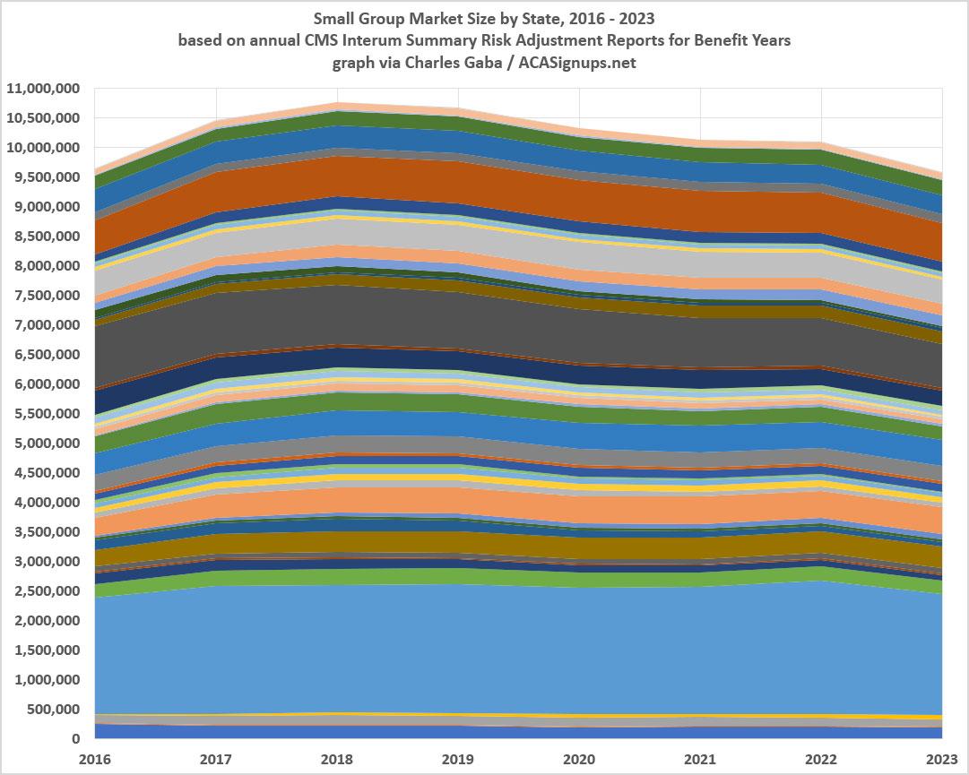 That's very much in line with this report from the Commonwealth Fund, which put the small group market a tad lower at 9.5 million in 2023.