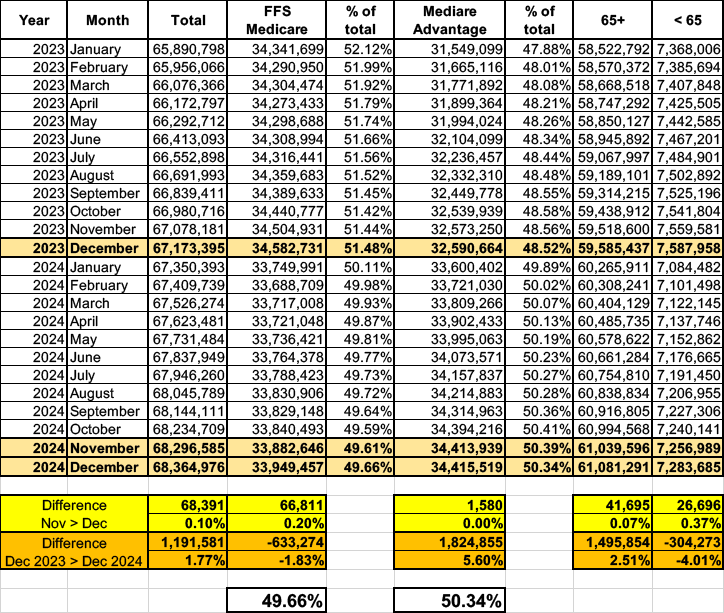 Musk/Trump Admin posts their claimed Dec 2024 Medicare enrollment data
