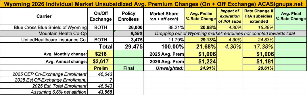 It was just a couple of weeks ago that the official (if preliminary) 2026 ACA individual market rate filings for Wyoming insurance carriers went live on the federal rate review website.