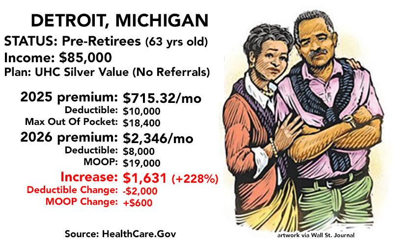 - An older couple just shy of Medicare age in Detroit earning $85K/year