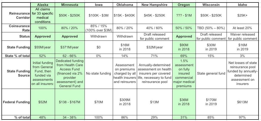 In response, several states (Alaska, Minnesota and Oregon) have enacted their own, state-level reinsurance programs, and several more are on the way (New Jersey, Maryland and Wisconsin). It's a fairly cut & dried way of keeping premiums down (or even lowering them in some cases) which requires no additional federal spending and much less state spending than you would think.