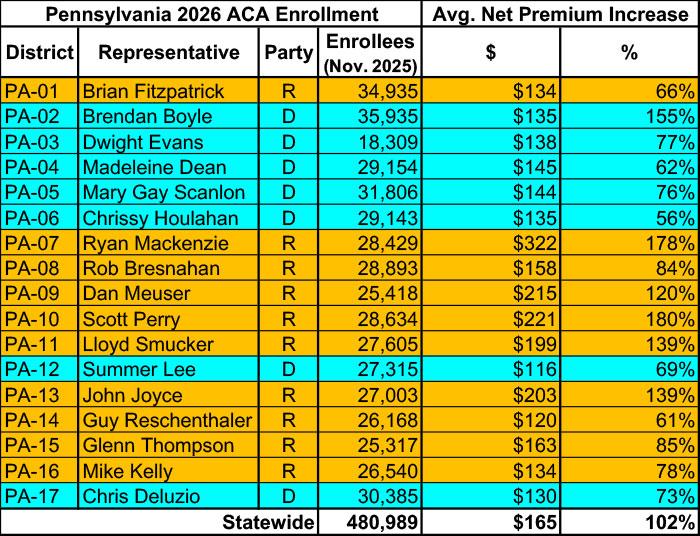 Pennie also provides a handy tool which breaks out the impact of the enhanced tax credit expiration on rate increases for all 17 PA Congressional Districts. They do include the number of effectuated enrollees as of the start of the Open Enrollment Period (that is, as of Nov. 1st, 2025):