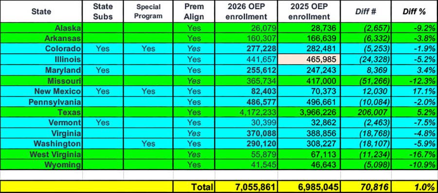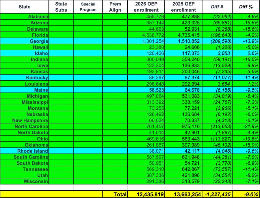 Having said all of that, here's what total 2026 OEP enrollment looks like broken out by these criteria: