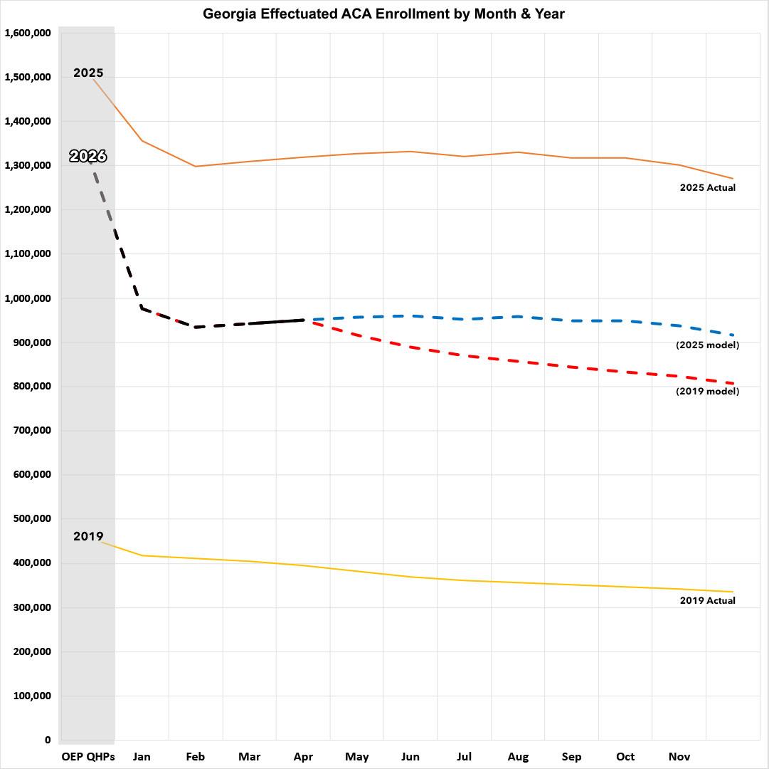 In any event, here's what effectuated enrollment will look like for the rest of the year in Georgia assuming it follows either the 2025 or 2019 patterns: