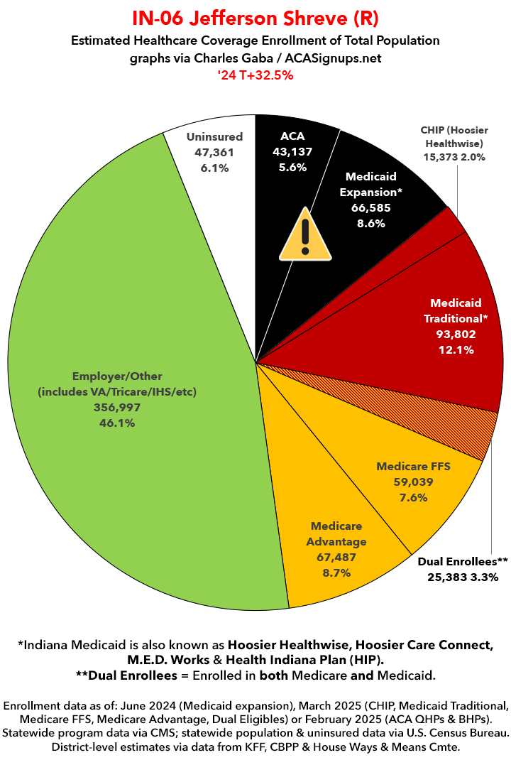 UPDATE 7/3/25: I've updated the web versions of the graphics with the most up-to-date enrollment data I have access to. The black sections w/the ⚠️ symbol are those most at risk of losing healthcare coverage due to H.R. 1, the "One Big Beautiful Bill Act" (aka the #MAGAMurderBill).