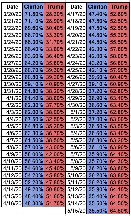 All data below is up to date as of Saturday, May 16th, although due to variances in when different states report the data, some of the data may be from a day earlier. The counties are color-coded depending on whether they voted for Donald Trump (orange) or Hillary Clinton (blue) in 2016.