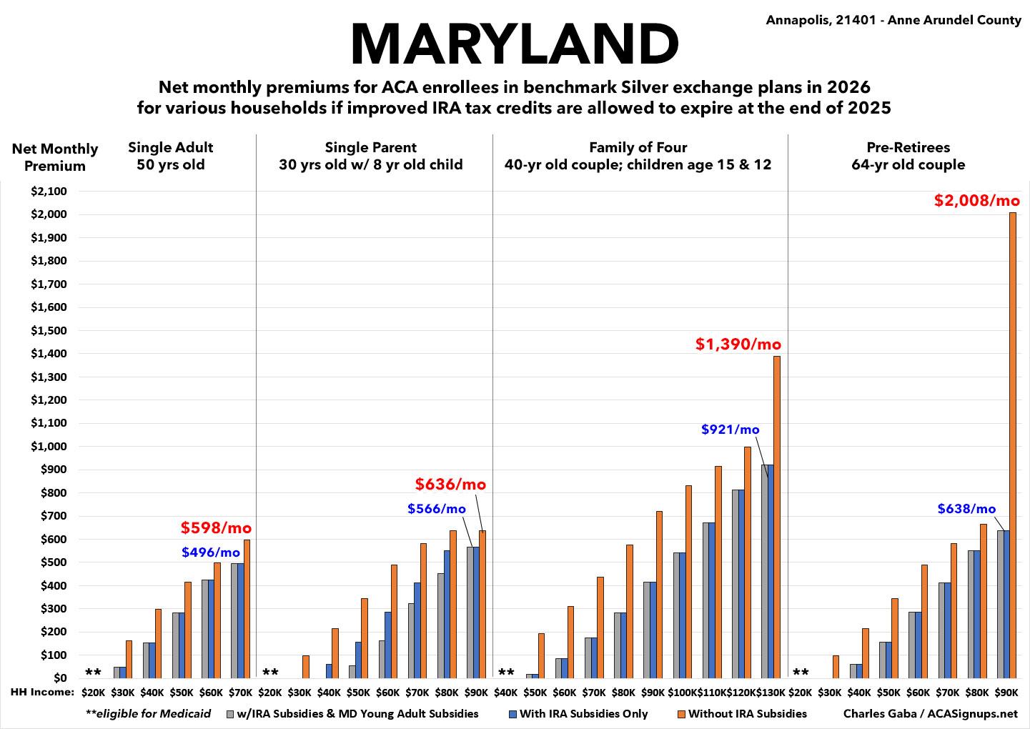 NOTE: Maryland has their own state-based supplemental subsidies which help reduce premiums for young adults only; these may or may not continue going forward.