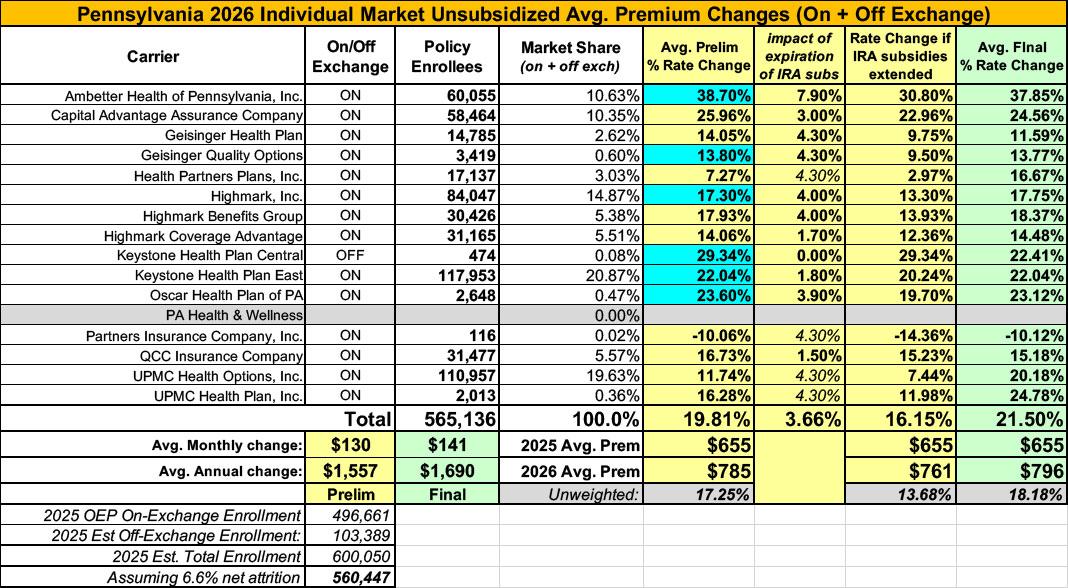 In Pennsylvania specifically, all of this will result in average gross premiums hikes of 21.5%.