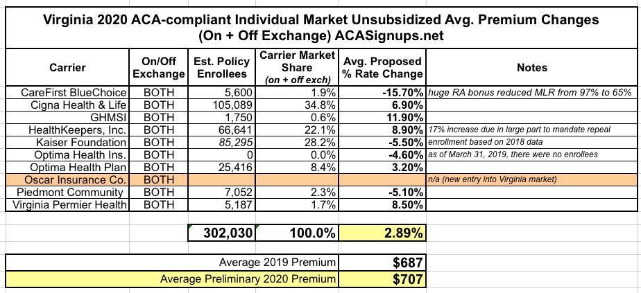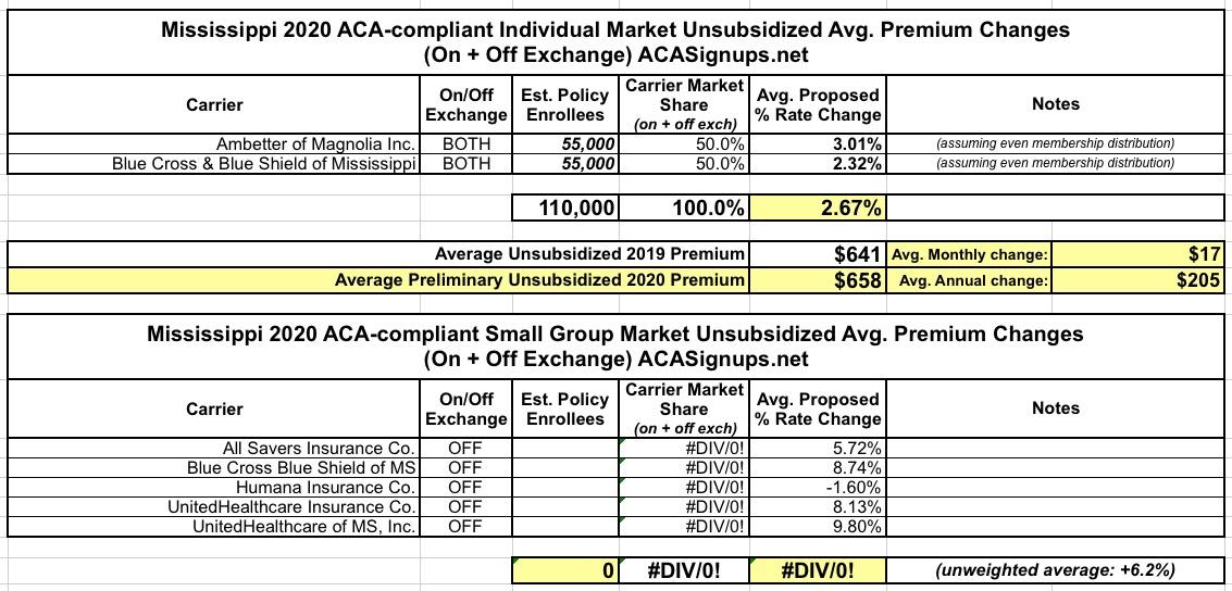 In other words, I've had a pretty good track record of accurately projecting average premium increases for the upcoming year for four years in a row. With that in mind, below you'll find a table tracking the state-by-state preliminary and final rate changes for the 2020 ACA-compliant individual (and sometimes small group) markets. Scroll down for individual state entry links.