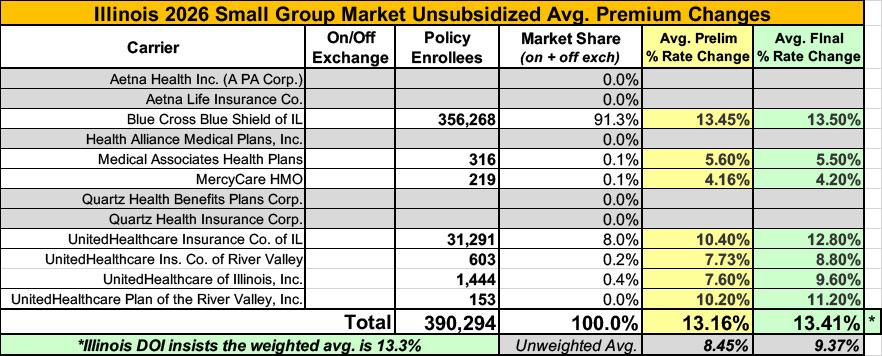 The net result of all of this is that the weighted average for Illinois individual market rate hikes has risen by 6 more points to 29.4%.