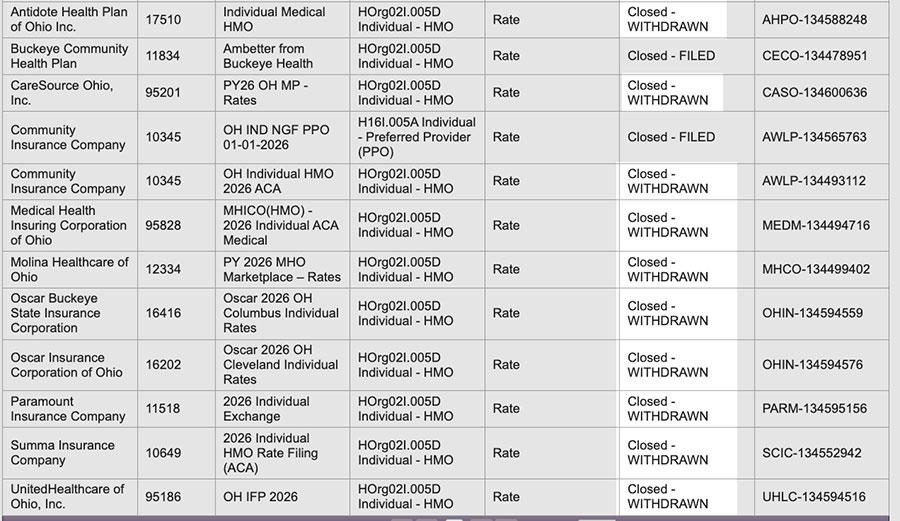 UPDATE 9/19/25: Welp. Sure enough, as I predicted earlier this week, it looks like Ohio carriers have scrapped their supposedly "final" 2026 rate filings and have to make some adjustments after all...all of the filings which were listed as APPROVED a few weeks ago now read WITHDRAWN.