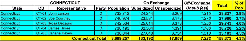 Connecticut has around ~151,000 residents enrolled in ACA exchange plans, 88% of whom are currently subsidized. I estimate they also have another ~7,000 unsubsidized off-exchange enrollees.
